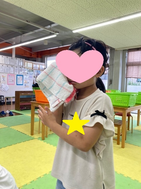 リトルオレンジズの10分集中では、子どもたちと洗顔に取り組みました!